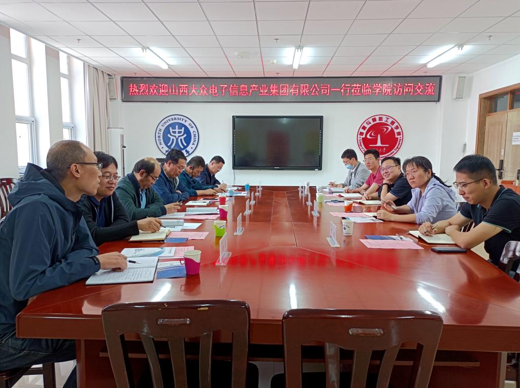 2023年6月1日,山西大众电子信息产业集团有限公司副总经理郭兴龙一行6人到学院访问交流。院长陈平、党委副书记兼副院长魏媛媛、相关系主任和科室负责人参加了座谈会。