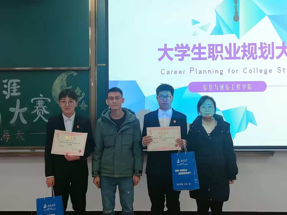 经过激烈角逐,王星雨、陈小营获得一等奖,刘威朝、翟洪、鲁德琪获得二等奖,张紫晗、刘承奇、董宛姝、伊浩然、蔡京奇获得三等奖。比赛最后,举行了大学生职业规划大赛(成长赛道)颁奖典礼,为获奖同学颁发了荣誉证书和奖品。