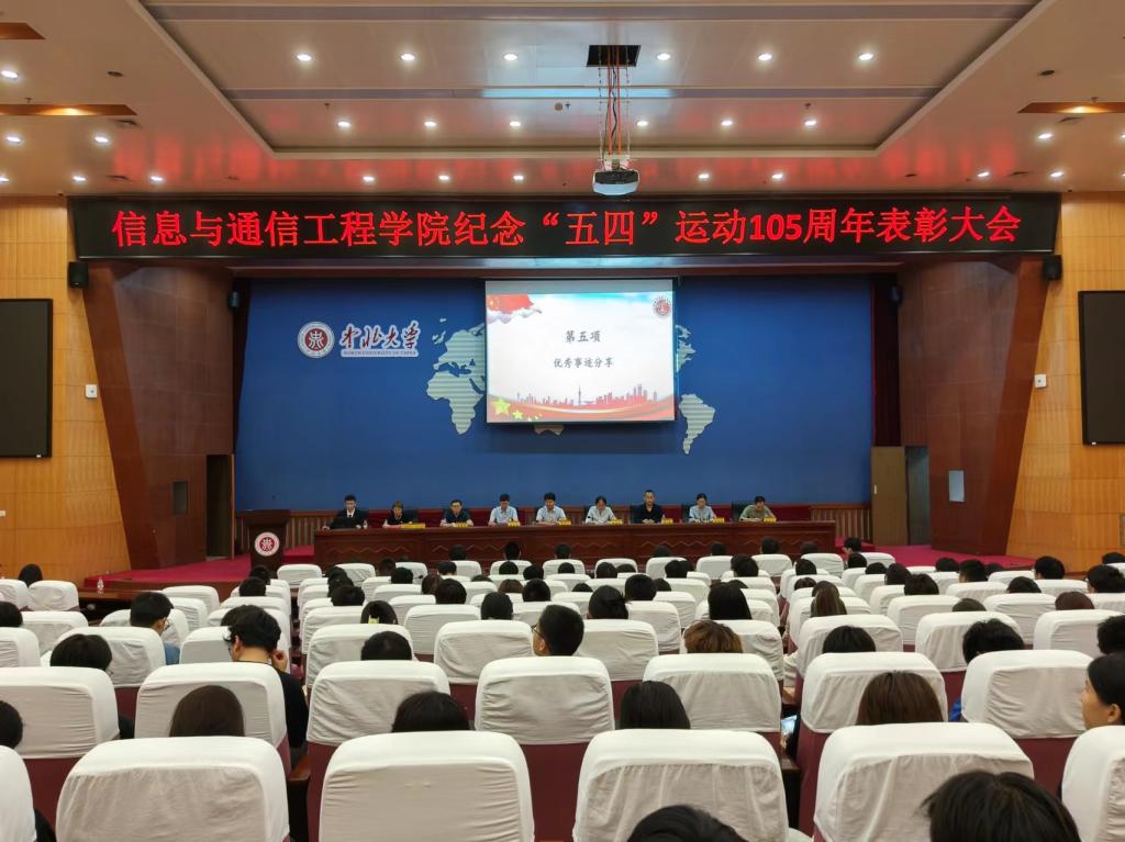 纪念“五四”运动105周年表彰大会在图书馆五层学术报告厅隆重召开。学院党委书记曹凤才、党委副书记兼副院长魏媛媛、教学院长陈友兴以及各专业负责人出席了大会。会议由院团委书记闫婷主持。