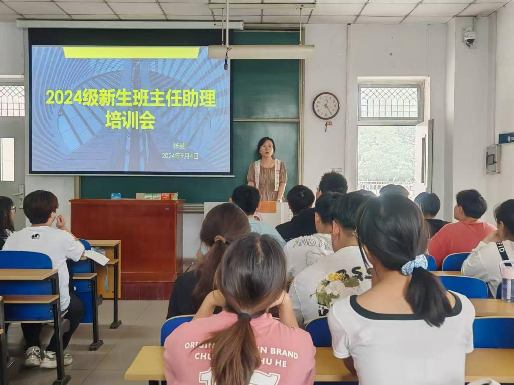 在11216T教室召开了2024级新生班主任助理培训会,学生科张昱老师主讲,全体新生班主任助理参会。
