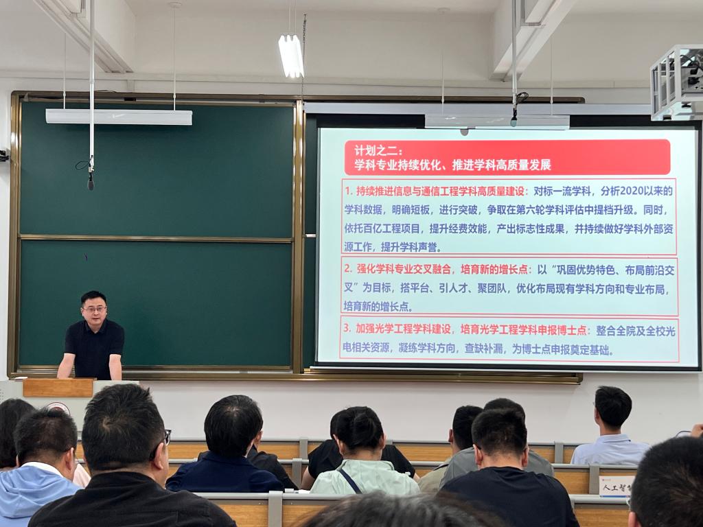 建设等进行了详细部署。随后魏书记对全院学生学情进行了分析,倡导全体教师将教书与育人有机结合,对特殊群体学生给予关心,对班级整体学情给予关注,以学生为中心,将升学指导、就业引导、创新辅导与日常教学环节相结合,帮助学生树立学业信心,明确职业方向。