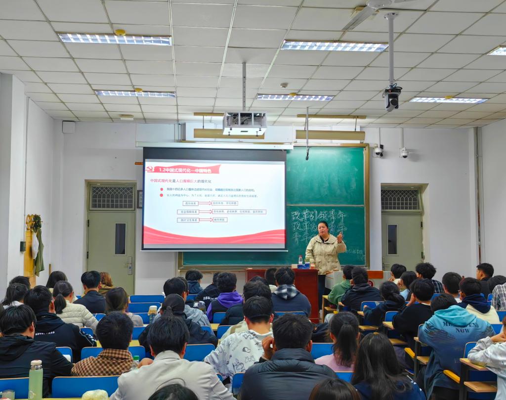 薛艳霞老师以“学以致用,践行中国式现代化道路上青年的使命担当”为主题进行了理论宣讲。薛老师以深入浅出的方式,从党的二十届三中全会的重大意义和主题、习近平总书记关于全面深化改革的重要论述、全面建设社会主义现代化国家的目标任务等内容做了全面解读。她指出在推进强国建设、民族复兴伟业中,青年要勇当先锋队、突击队,奋力书写为中国式现代化挺膺担当的青春篇章。