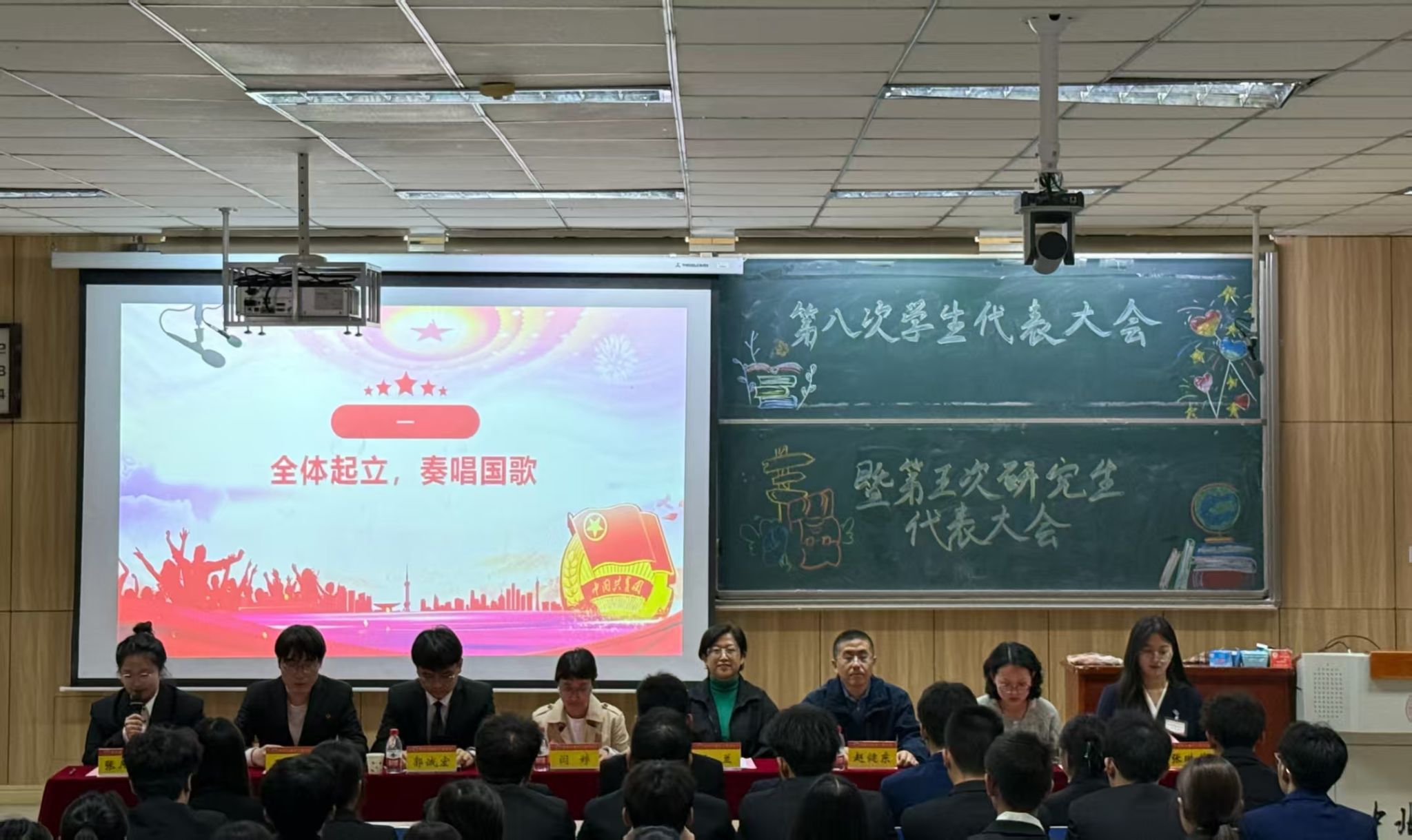 党委副书记兼副院长么兰、团委书记闫婷、学生科赵健东老师、张华荣老师,研究生会、学生会主席团成员及全体学生代表共同参加会议。