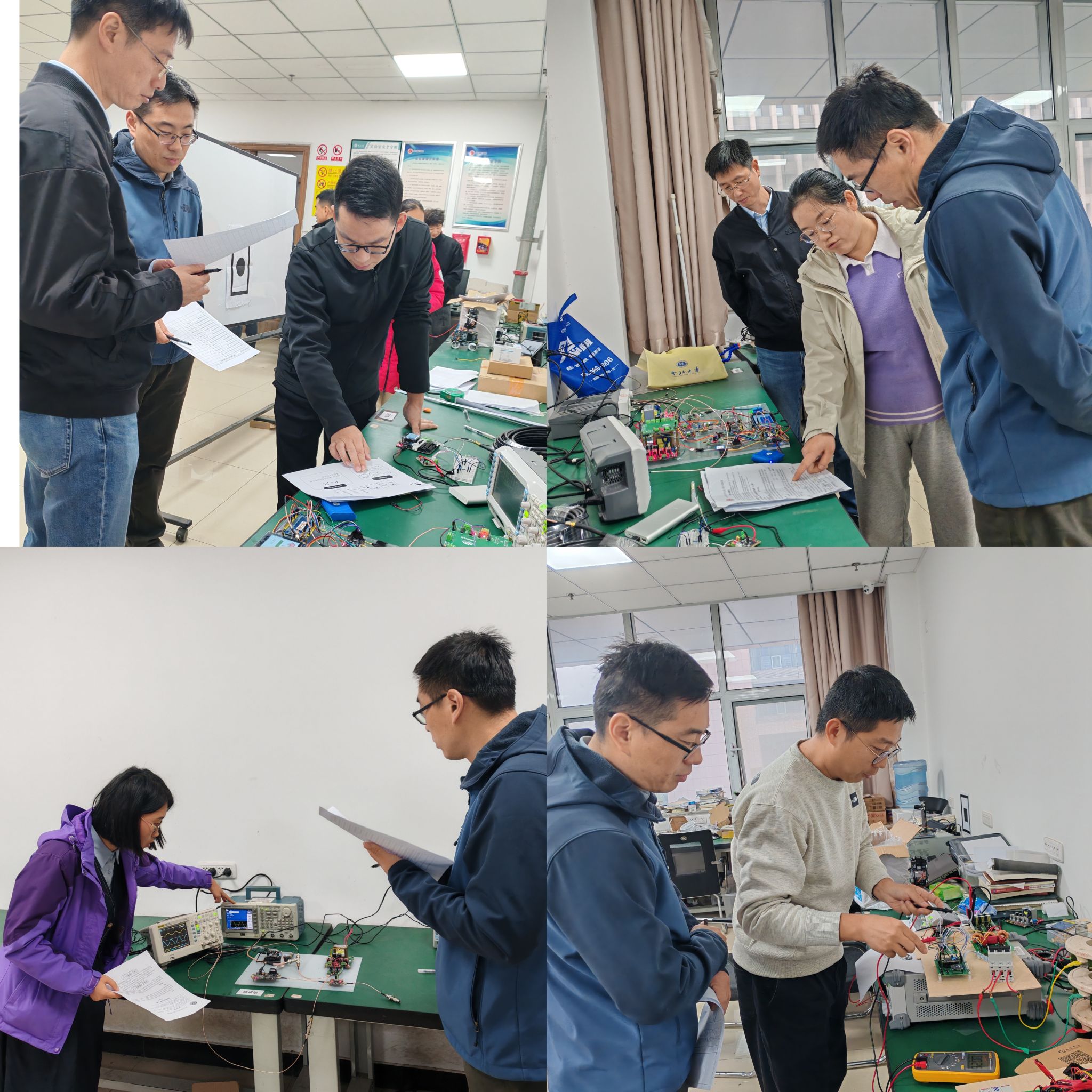 的43名青年教师参加本次竞赛,竞赛按题目分组分别进行,参赛成员需完成从理论设计、硬件搭建到软件编程、系统调试的全过程。赛场内,教师们神情专注,熟练地操作着各种仪器设备,充分展现了新时代青年教师扎实的理论功底和卓越的动手能力。评审专家通过参赛选手现场系统演示和电路设计环节,在课题完成度、设计方法、实验效果等多方面进行综合评定。评审专家最后对参赛选手的表现进行逐一点评,以助于促进青年教师专业发展和能力提升,进一步激发青年教师投入学科竞赛的热情。参加的教师纷纷表示,将把大赛的收获带回实验室,转化为提升科研水平和学科竞赛能力的实际行动。