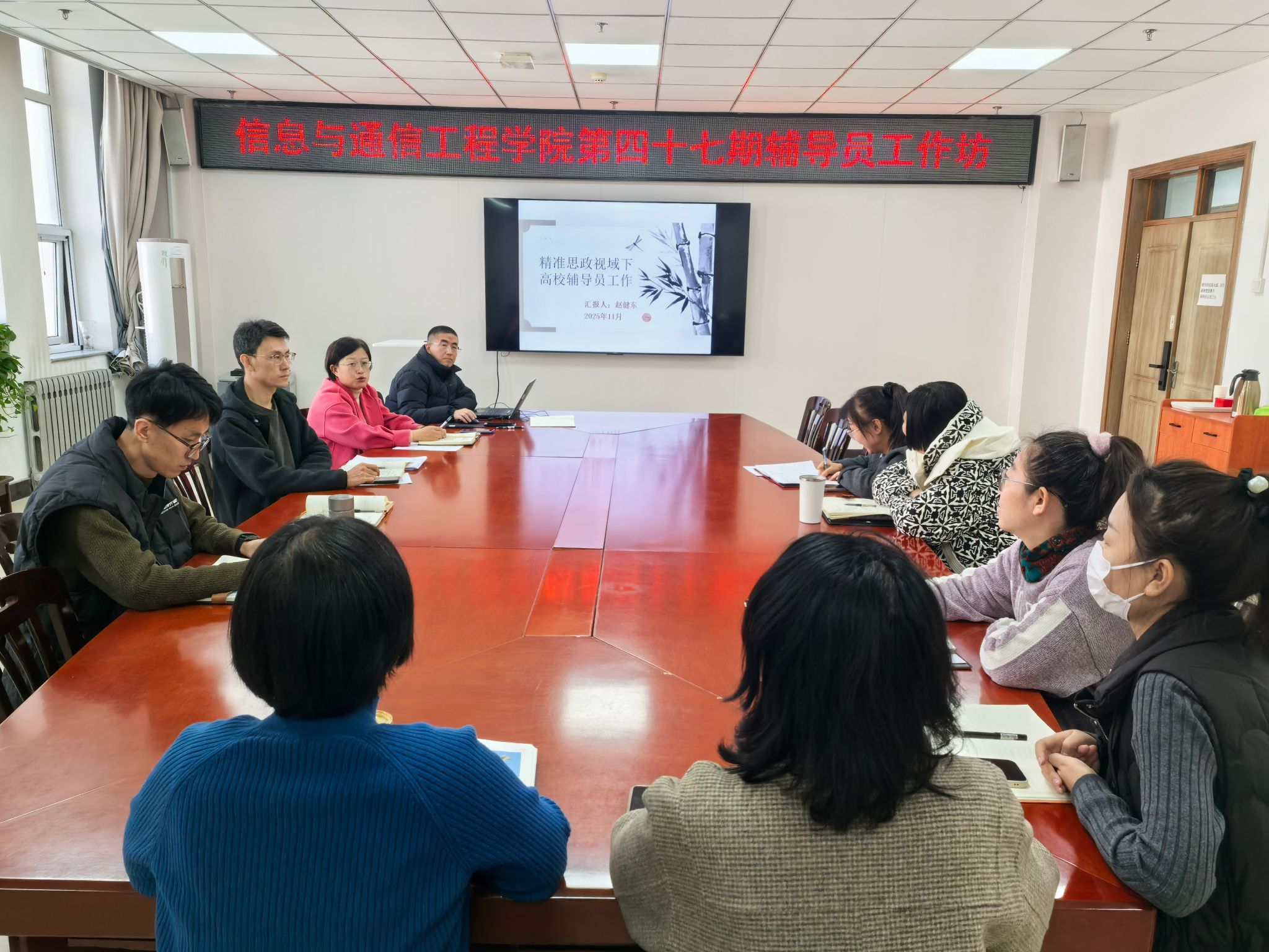 11月18日上午,学院在713会议室举办第四十七期辅导员工作坊。本次工作坊由学院党委副书记兼副院长么兰主持,辅导员赵健东老师担任主讲人,全体辅导员参加。