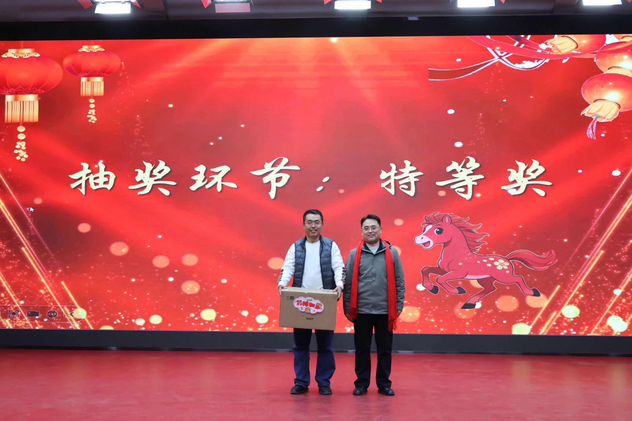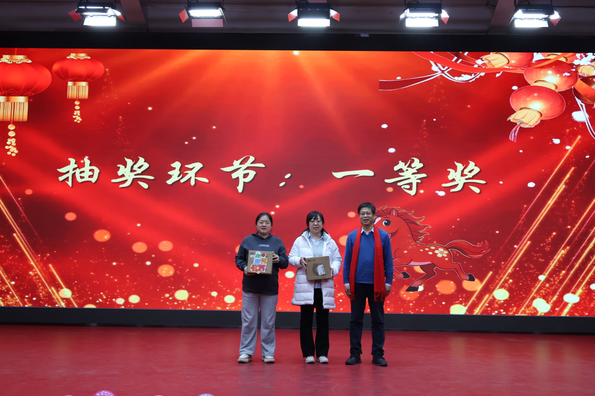 副校长尹建平、副校长杨风暴莅临联欢会现场,为师生送来新年祝福的同时新年抽奖。