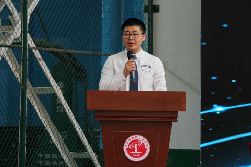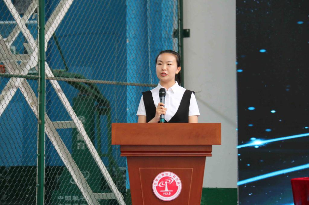 接着,毕业生代表程成同学发言,总结四年来学到的知识与技能,深切表达了对学院领导、老师的感激之情和对同学、朋友的不舍之情,以及即将踏入社会的坚定信心。在校生代表杨鸿泽同学发言,表示将继承学长、学姐们的精神,努力向学长、学姐学习,报效祖国,回报社会,同时也祝愿学长、学姐们在日后事业中鹏程万里,一帆风顺。全体毕业生在田东明同学的领誓下,发出“修德立信,笃行通达”的铮铮誓言。