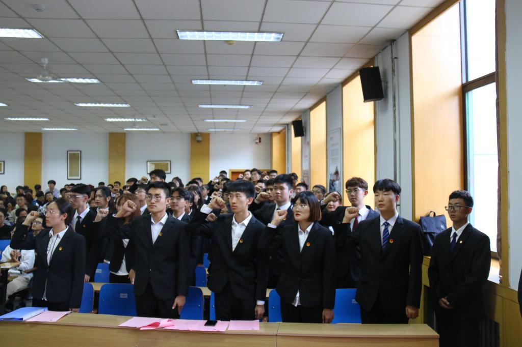 接着闫婷老师宣读了2019届各级学生干部任命书。任命宣读之后由吕健宁同学领誓,新一届全体学生干部起立宣誓。庄严誓言,心心向之。誓毕,2019年度学生干部代表王采慧同学发言,一股新鲜血液流动时的激情瞬间弥漫会场。
