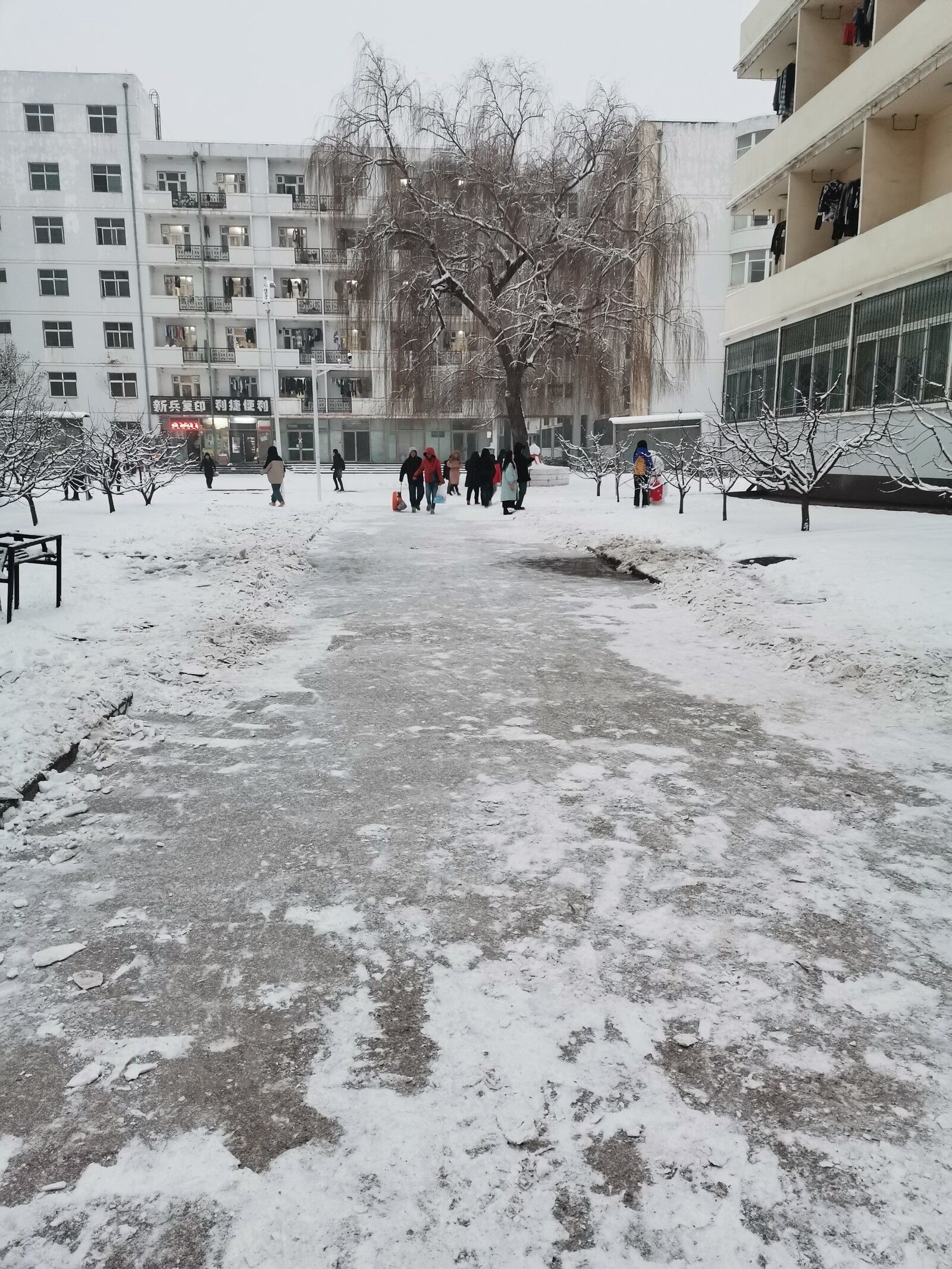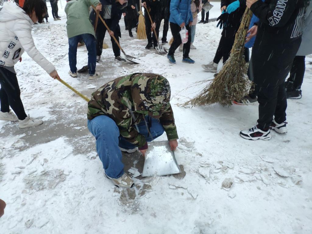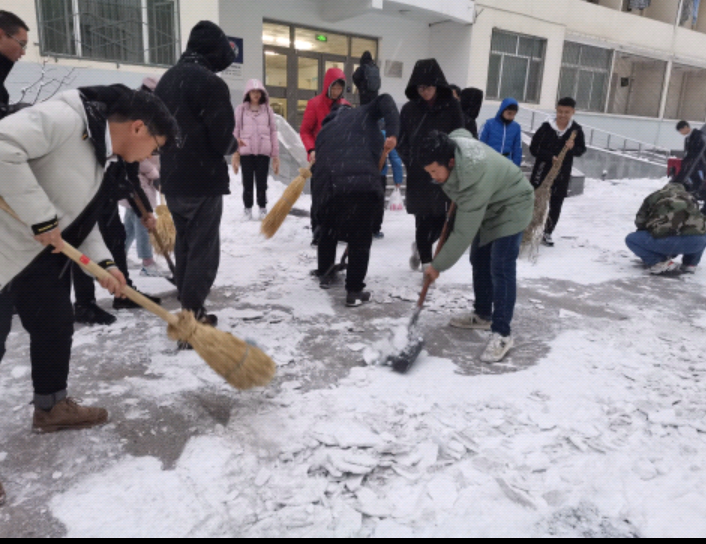 东至学生宿舍区、电工电子实验中心,西至一号教学楼前长达数千米的中央大道,同志们分工有序、热情高涨。大家齐心协力,配合默契,铲的铲、推的推、扫的扫,把校园道路上的残雪一点点挖起来,并运到路旁边。冬日的寒风阻挡不住党员清扫积雪的热情,忙碌的身影构成了冬日一道亮丽的风景线。经过大家的齐心奋战,道路变得干净畅通,为师生的通行提供了便利,营造了干净整洁的校园环境。