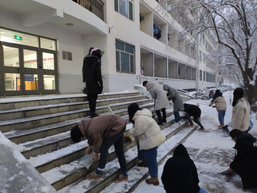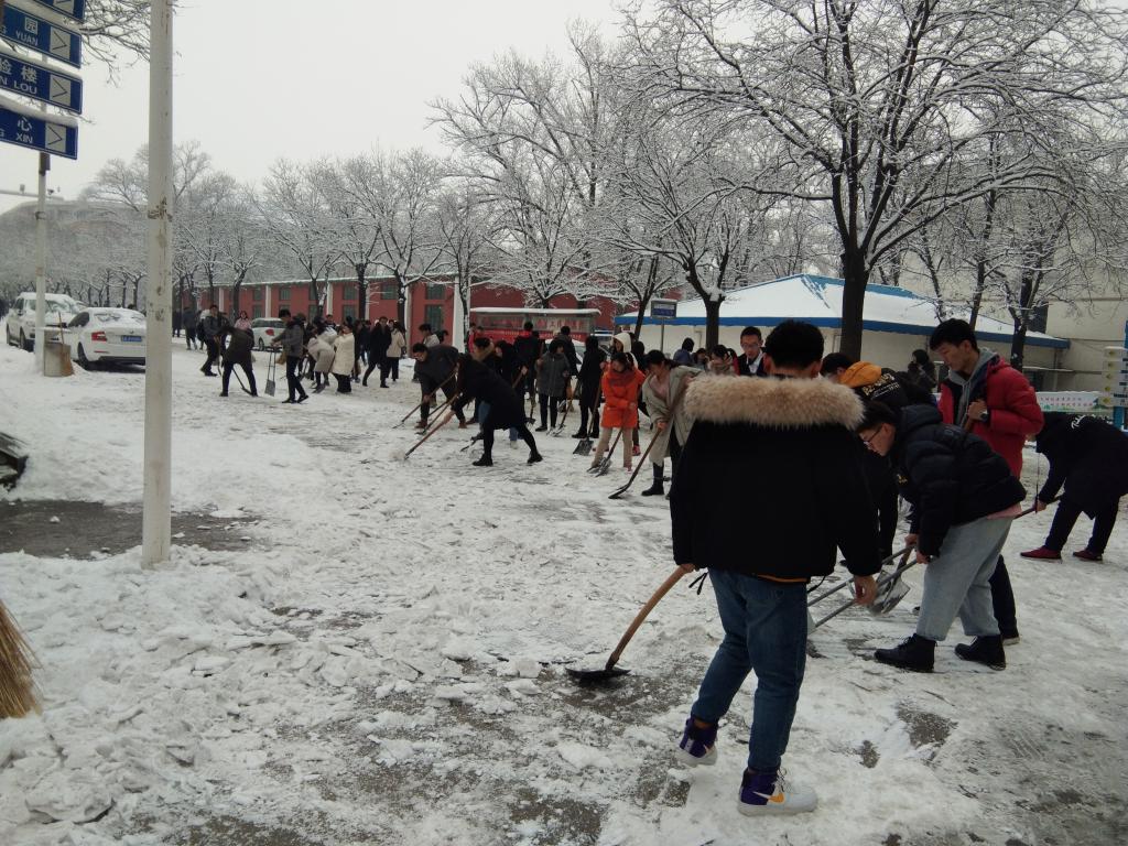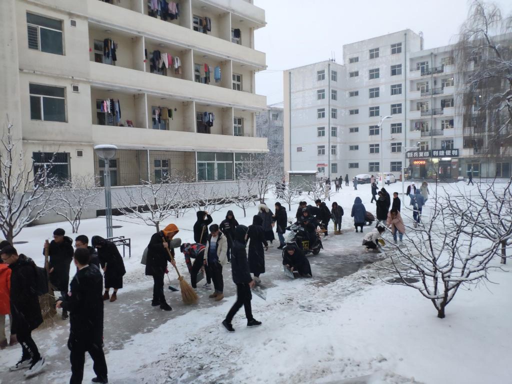 2019年1月6日上午,在学院党委的统一部署下,各师生党支部联合开展了“清扫校园积雪,创设美好环境”主题党日活动,广大师生党员、积极分子响应号召纷纷参与到铲雪除冰活动中来。