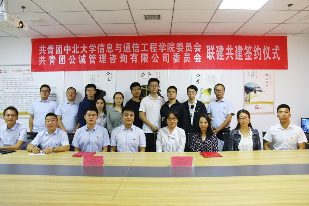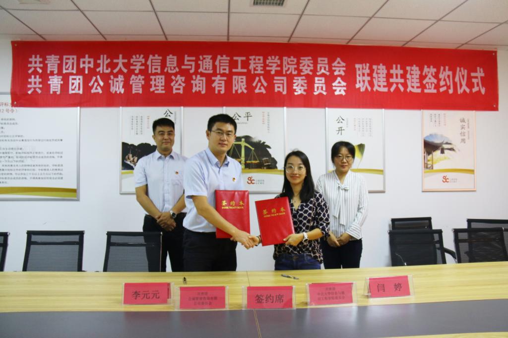 为了进一步加强基层团组织建设,提升团建工作整体水平,9月21日,学院团委与公诚管理咨询有限公司团委在公诚咨询山西分公司会议室隆重举行团建共建签约仪式。公诚咨询山西分公司副总经理程圣杰、团委书记李元元、学院党委副书记魏媛媛、团委书记闫婷出席签约仪式,双方团员代表共计20余人参加活动。