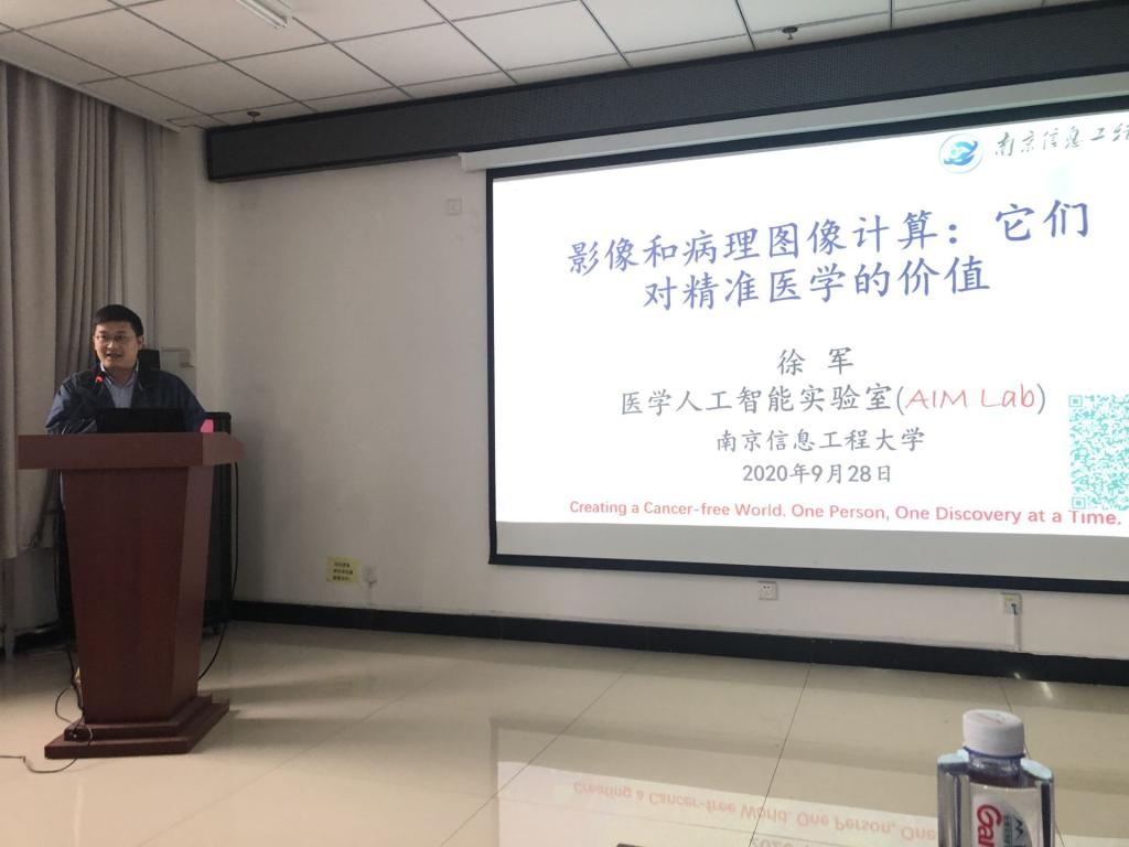 在讲座中,张道强教授结合自己多年的科研成果,对人脑的网络重建、以及阿尔兹海默症等脑疾病与图像特征的关系做了报告;徐军教授从放射医学影像和病理图像的计算角度出发,阐述了图像分析对精准医学的重要价值;徐鹏教授对脑电的皮层网络构建进行了介绍,并说明了影像智能分析对脑疾病早期诊断的意义;陈阳教授对医学影像的解析和迭代重建算法进行了比较分析,并与大家分享了自己最近在人工智能与图像重建深入融合方面的研究工作;邬霞教授深入浅出地讲解了医学影像在脑功能认知方面的意义,并介绍了基于神经影像数据挖掘的一些经典和前沿方法。