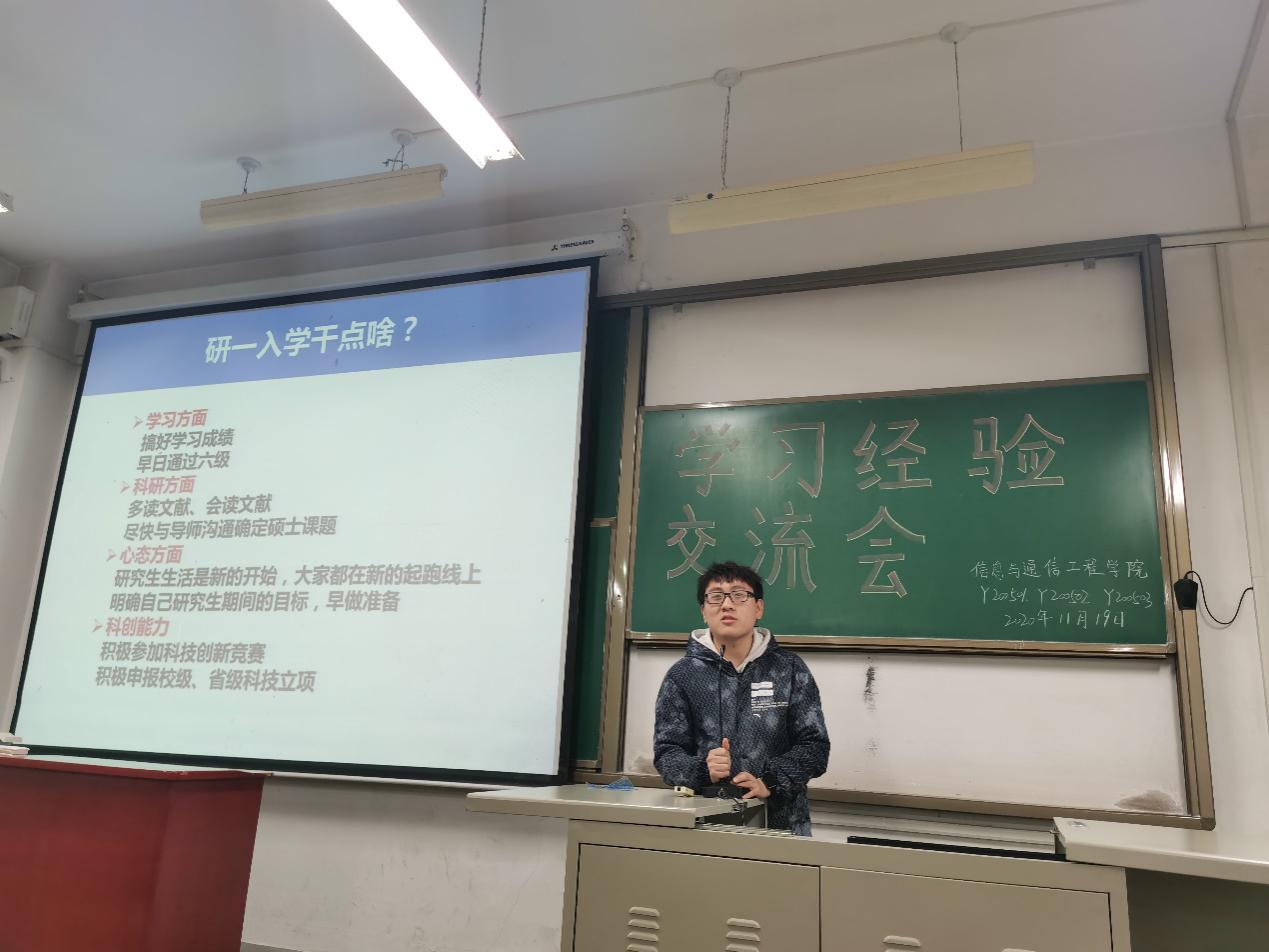 在13201H教室召开了研究生学习经验交流会。本次交流会邀请了2017级博士生燕慧超同学和2018级硕士生冯士杰同学担任主讲,学院2020级全体研究生新生到现场聆听。