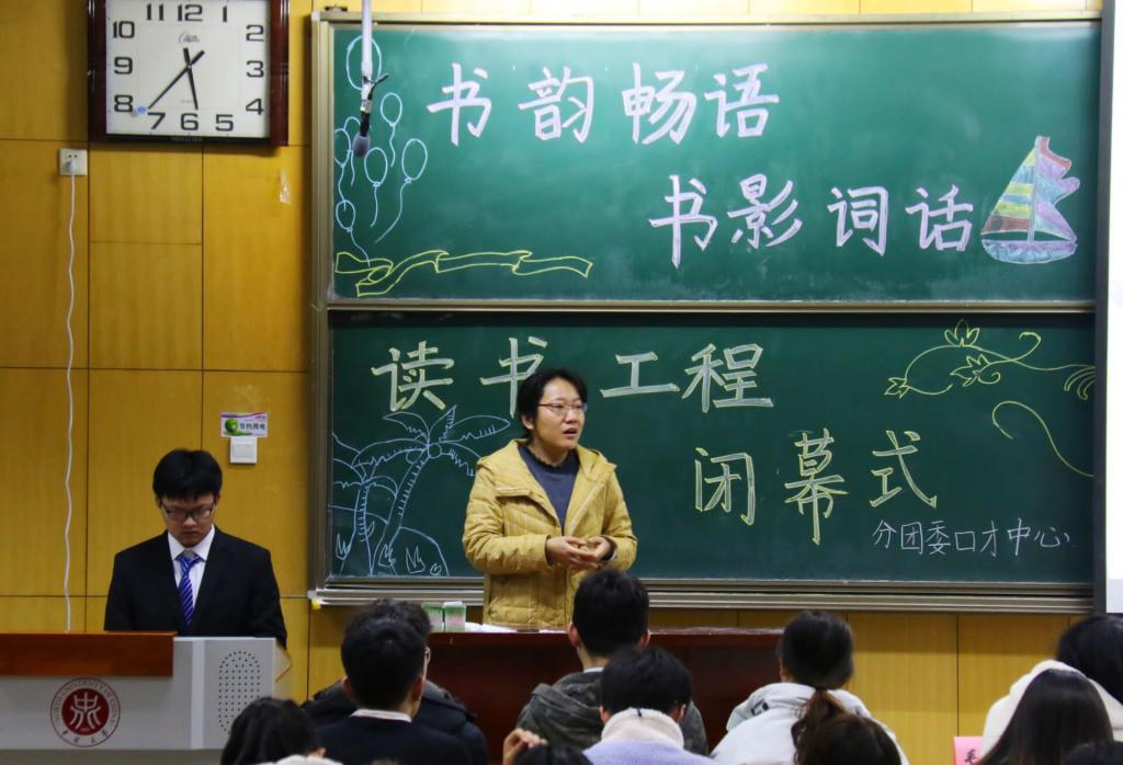 在11108H教室举办了第五届“悦读悦美”读书工程闭幕式暨表彰活动。院党委副书记兼副院长魏媛媛、团委书记闫婷、院团委王彪老师、毛凯娜老师及学院全体学生干部参加本次活动。