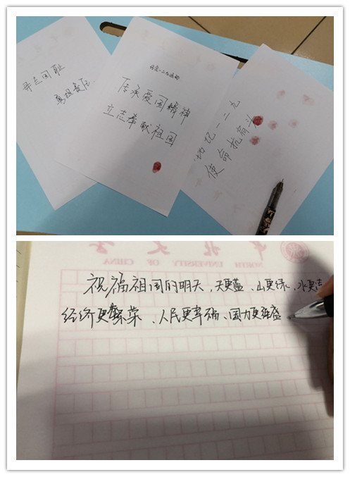 主题活动通过三个环节开展:第一:视听感受、分享爱国知。成员通过观看一二•九运动纪录片或视频剪辑,了解一二•九运动的历史背景、过程、成果、影响等。成员分享:什么是爱国?发生在自己或身边的体现爱国主义精神的事例?让成员理解什么是真正的爱国? 第二:情景带入、唤醒爱国情。成员回忆自己感受过的、看到过的、印象深刻的爱国场景,画一幅以“我和我的祖国”为主题的画,每个人分享画的内容,让成员感受国家与个人成长密不可分的关系,激发成员爱国之情、报国之恩。第三:小事着手、践行爱国志。成员分享一件以前没有做到、今后要做到的事,这件事既能满足个人的实际需求,又能体现爱国的责任与担当,让成员主动将小我融入祖国的大我中,从小事,具体事入手,在为人民服务中实现人生价值,升华人生境界、践行爱国之志。最后,大家以歌唱祖国、祝福祖国、告白祖国等形式,表明爱国心。