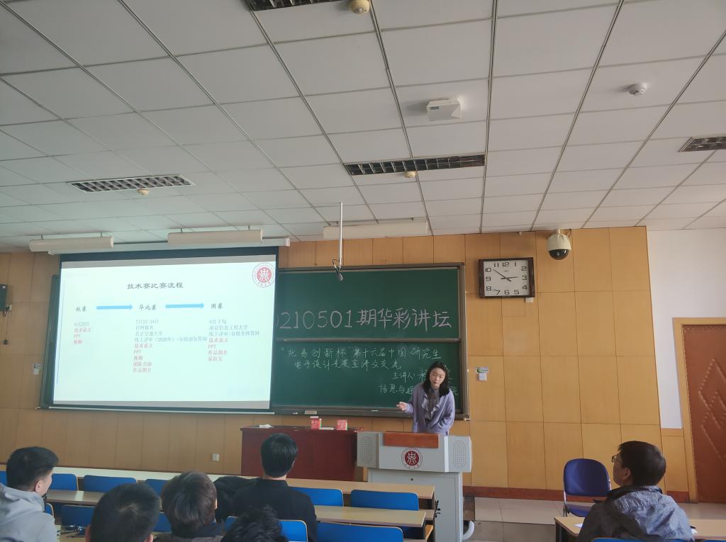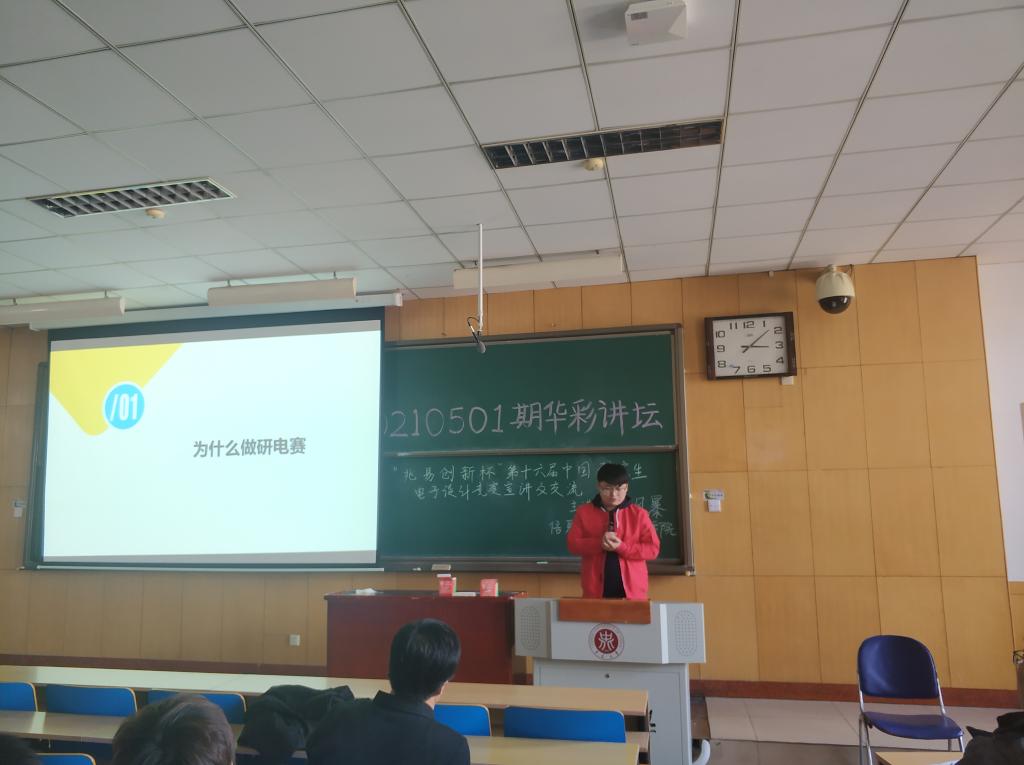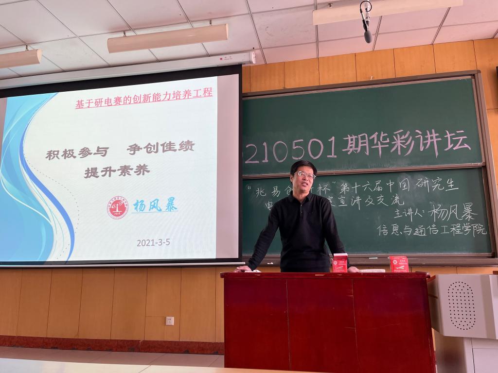 在11409教室为同学们举办了一场关于第十六届研究生电子设计大赛的宣传与经验分享活动。学院院长杨风暴教授、科研科的老师以及在比赛中曾获奖的团队代表出席了本次活动。