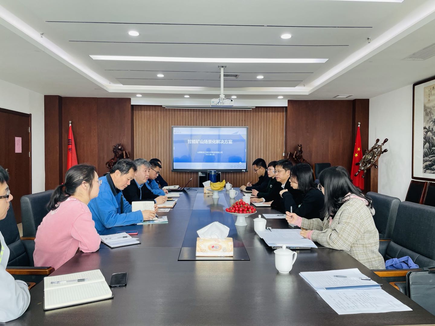 山西阳光三极科技股份有限公司始创于1997年,立足于安全生产信息化建设,长期为煤炭及非煤企业安全监测监控提供定制化的解决方案。院长杨风暴介绍了学院的学科专业与相关特色研究优势,同时就双方联合申请科研项目、共建校企培养基地、促进科研成果转化等合作思路进行了深入交流。