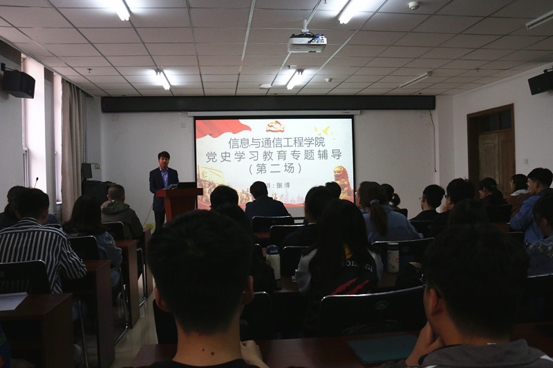 党史宣讲团成员张博老师在科学楼715做党史专题报告。学院全体院领导及师生党员聆听专题报告,报告由党委书记曹凤才主持。