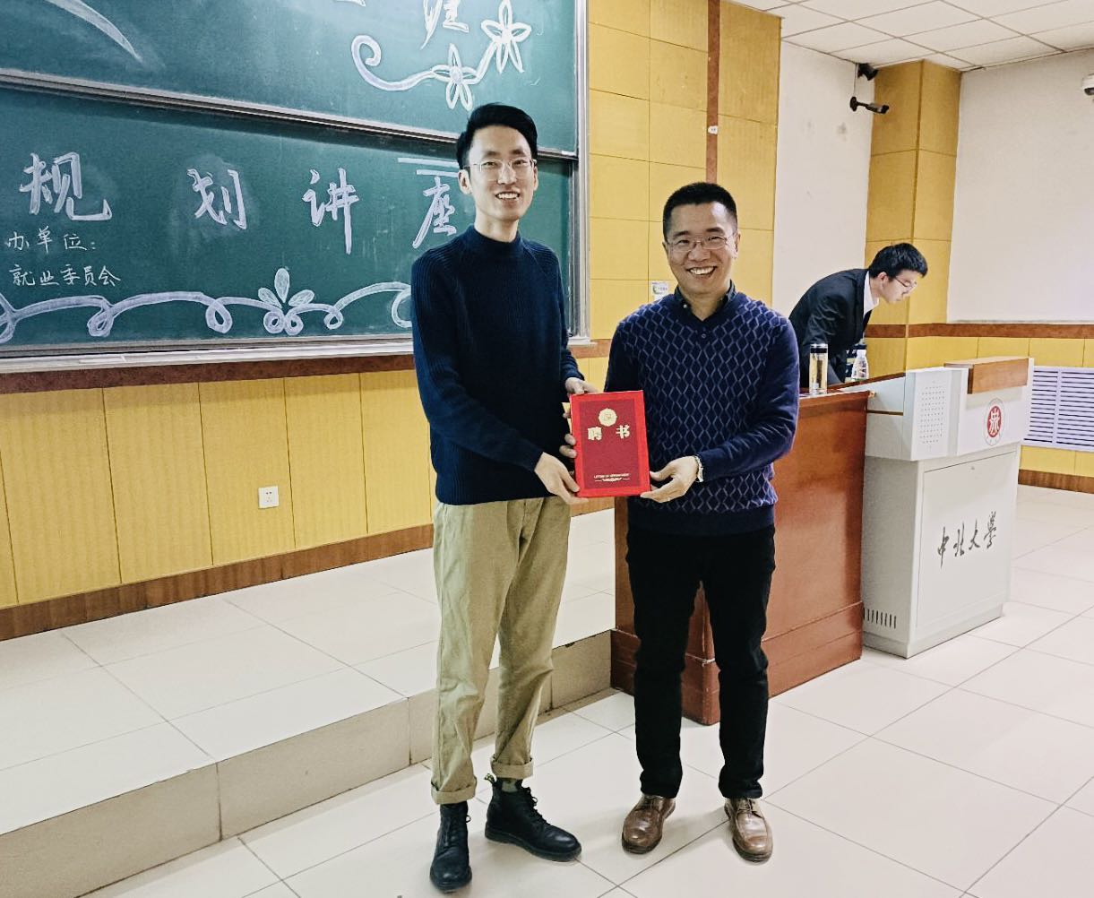 讲座结束后,学院就业辅导员孟伟代表学院为王洪杰老师颁发了职业生涯规划讲座特邀讲师聘书。