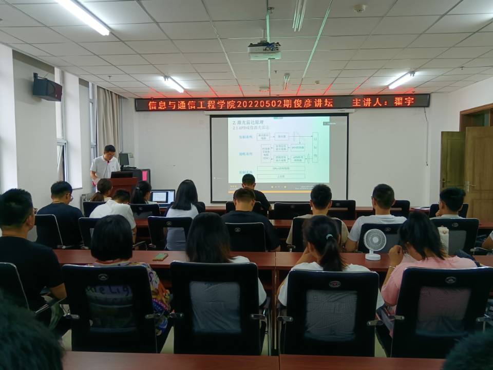 在此次讲坛中,翟老师从专业领域角度出发,为大家介绍了激光雷达的成像原理、发展过程、类别划分以及其在军事和民用领域的实际应用;同时,针对激光雷达所成距离像的目标识别技术展开深入讲解,对不同类型的识别算法进行比较和总结;最后,以个人的实际经验为同学们分享了阅读论文的方式方法和心得体会,就研究生在读期间遇到的问题与同学们展开了相关讨论。