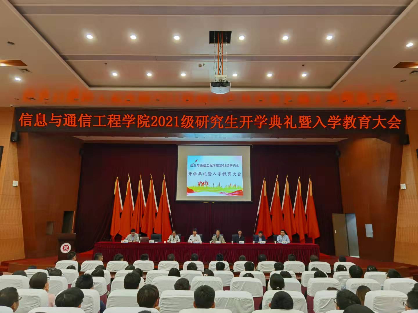 党委书记曹凤才、院长杨风暴、院党委副书记兼副院长魏媛媛、电子与通信工程系主任陈友兴、生物医学工程系主任张权以及研究生导师代表刘吉等出席了会议,大会在嘹亮的国歌声中拉开帷幕。