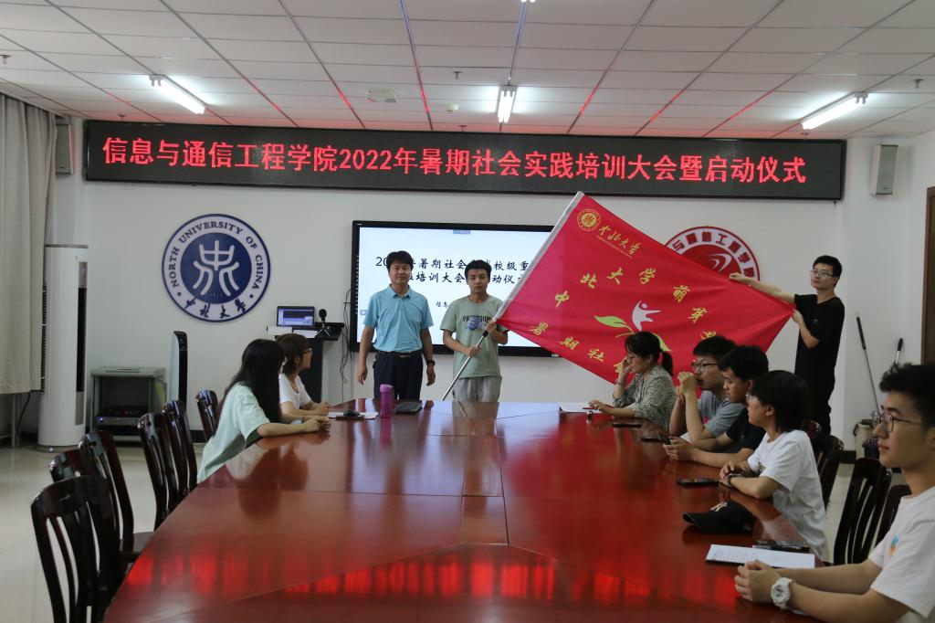 暑期社会实践队授旗。暑期社会实践活动是贯彻落实党的教育方针的重要举措,是深化实践育人的重要载体,希望同学们都能积极投身社会,在实践出真知、长才干、做贡献。