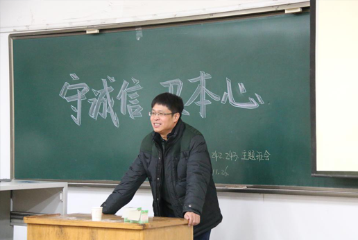 本次主题班会邀请了学院党委书记杨风暴教授。杨教授以自身的经历向我们讲述了诚信的重要性,并提出“做人要实、学习要实”的双实号召。希望同学们在面对困难是要坚强、忍耐,在逆境中激流涌进。