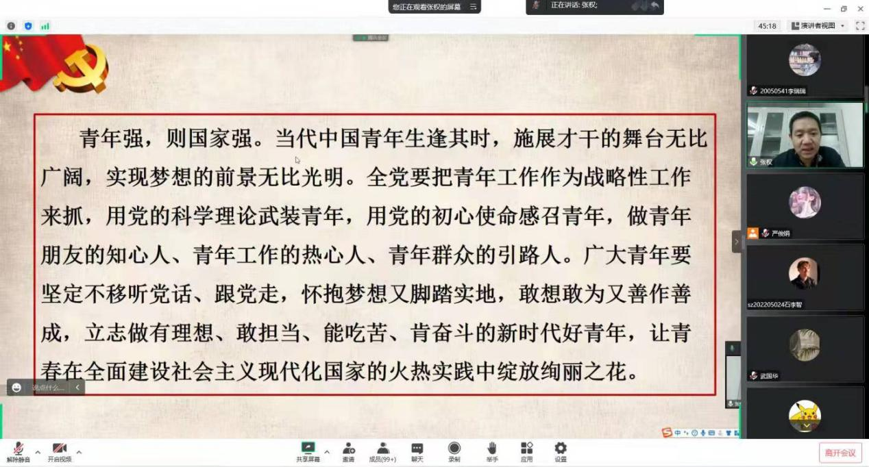 党委委员张权老师通过腾讯会议平台为生物医学工程专业师生党员和研究生第二党支部学生党员进行了党的二十大精神宣讲。