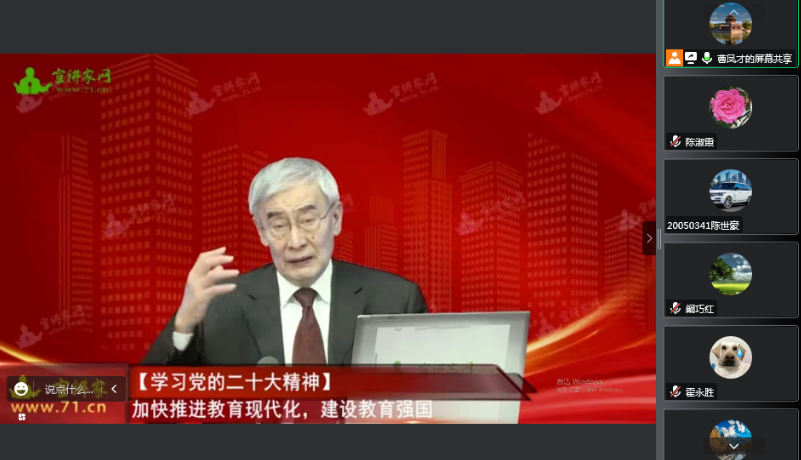 党委利用腾讯会议平台开展“党的二十大精神”专题学习会,国家教育咨询委员会秘书长、教育部原教育发展研究中心主任张力作了题为“加快推进教育现代化 建设教育强国”的专题报告。学院全体师生党员参加学习,学院党委书记曹凤才主持学习会。
