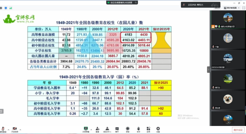 张教授对党的二十大的重要历史方位做了深入分析,紧密结合党的二十大报告中“实施科教兴国战略,强化现代化建设人才支撑”的相关论述,向我们展示了近些年“加快推进教育现代化,建设教育强国”的重要成就;系统梳理了历次党代会关于教育事业论述的发展脉络,结合历史与现实,运用生动的案例和详实的数据,深入阐释了未来更长时期党和国家在教育、科技、人才战略的整体部署,以及到2035年建成教育强国的总体目标、重点步骤和加快建设教育强国的政策导向;围绕党的二十大报告关于“教育、科技、人才是全面建设社会主义现代化国家的基础性、战略性支撑”谈了学习体会,他强调:站在“两个一百年”奋斗目标的历史交汇点上,全面建设社会主义现代化国家,教育是基础,科技是关键,人才是根本,我们应全面理解教育、科技、人才在全面建设社会主义现代化国家中的战略地位,深刻认识新时代加快建设教育强国、科技强国、人才强国的使命和任务,准确把握坚持教育优先发展、科技自立自强、人才引领驱动的相互关系,全力以赴将党的二十大的战略决策和整体部署落实到教育系统各个领域各个环节。