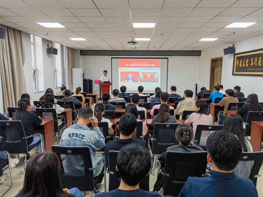 学院党委书记曹凤才对接研究生第二、第三党支部。曹书记授课时指出,党的二十届三中全会精神的核心在于“全面深化改革”和“推进中国式现代化”,这既是对过去改革经验的科学总结,也是对未来改革发展的总体部署,要深刻认识到,只有全面深化改革,才能不断破解发展难题,增强发展动力,厚植发展优势;只有推进中国式现代化,才能确保我国始终沿着社会主义道路前进,实现中华民族伟大复兴的中国梦。