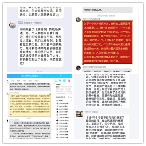 观看节目结束后,部分党员现场做了心得交流,部分党员在线上发表了自己的收获和感言,优秀共产党员的风采时刻激励着广大党员,以榜样为镜,向榜样学习、向榜样看齐,将榜样精神落实到实际工作中。