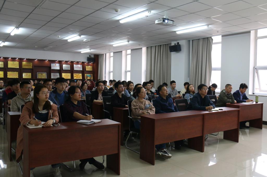 党史宣讲团成员张博老师在科学楼715做党史专题报告。学院全体院领导及师生党员聆听专题报告,报告由党委书记曹凤才主持。