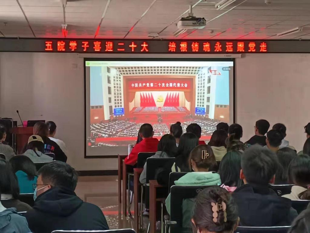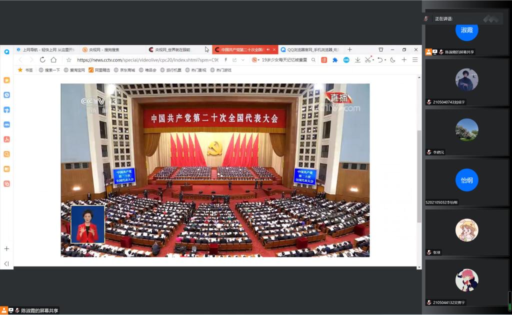 党委书记曹凤才、院长杨风暴、党委副书记魏媛媛、各党支部书记、系主任及全体师生党员在科学楼713会议室和715报告厅、腾讯会议平台,通过线上线下共同收看了开幕会盛况直播。