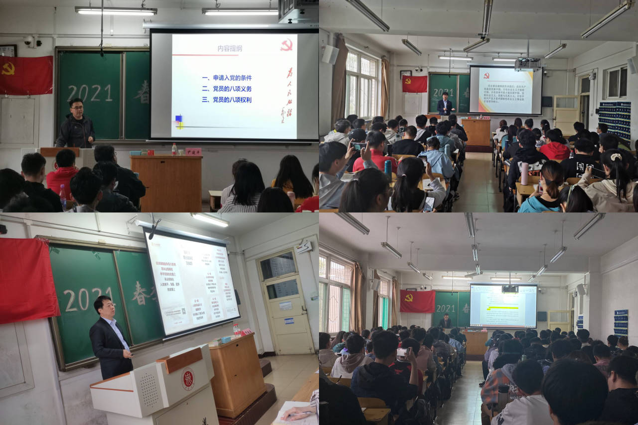 为加强学生思想教育,深入学习和掌握党的理论知识,进一步了解国情、了解党情、认识社会,澳门威尼斯 于2021年4月24日和5月9日在10305H教室举办了2021年春季学期院党课培训。本次培训邀请到了教师发展中心处长尹建平、机电工程学院党委书记罗建国、澳门威尼斯 党委书记曹凤才、大数据学院党委书记郭书杰、经济与管理学院党委书记王琳、人文社会科学学院党委书记雷丽蓉、化学工程与技术学院党委副书记李云、理学院党委副书记孙俊伟作为主讲人进行了培训。全院144名积极分子参加了此次培训。
