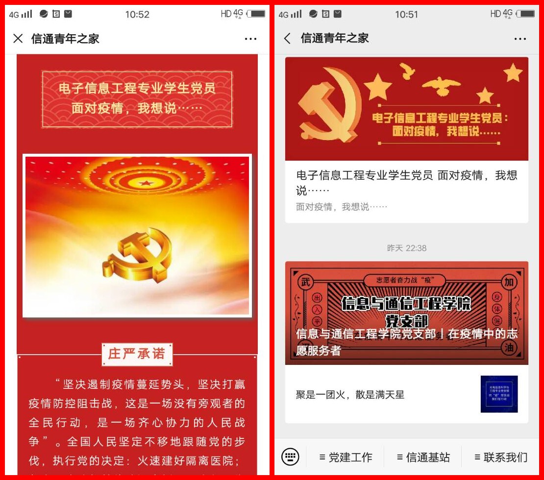 同时,我支部将活动进展情况以图文形式推送到了学院公众号“信通青年之家”,营造了正面舆论氛围:尽管疫情还在,只要我们坚定信念,每个党员带头发挥不畏困难,无私奉献的精神,就一定能打赢这场阻击战。