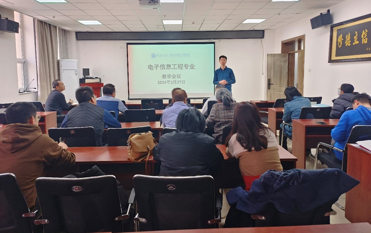 电子信息工程专业在科学楼B座715会议室,召开新学期第一次教学会议。会议由电子信息工程专业负责人李凯主持,学院陈友兴副院长及电子信息工程专业教学、科研一线教师参加了会议。