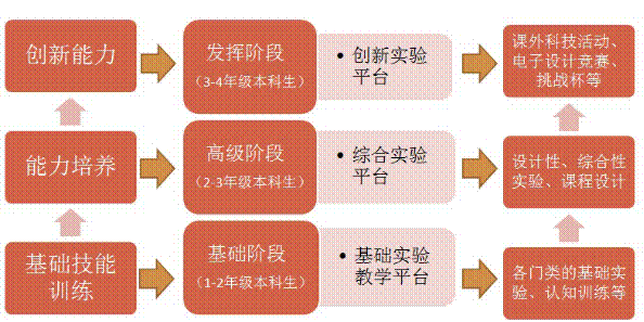 实践表明,这一模式已获得显著效果,一些“个性化”较强的学生在各类学科竞赛活动中取得可喜成绩。分阶段、分层次、个性化培养的实践平台搭建框架如图2所示。