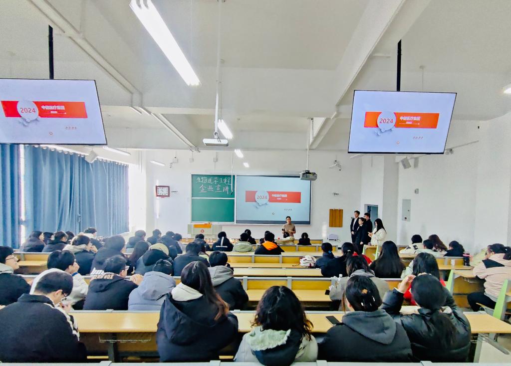 中健医疗集团人力资源部戴经理向同学们介绍了集团的组织架构、发展理念、公司目标、澳门威尼斯等,集团面向医学相关专业招聘临床应用工程师、临床检验工程师以及运维工程师等岗位。